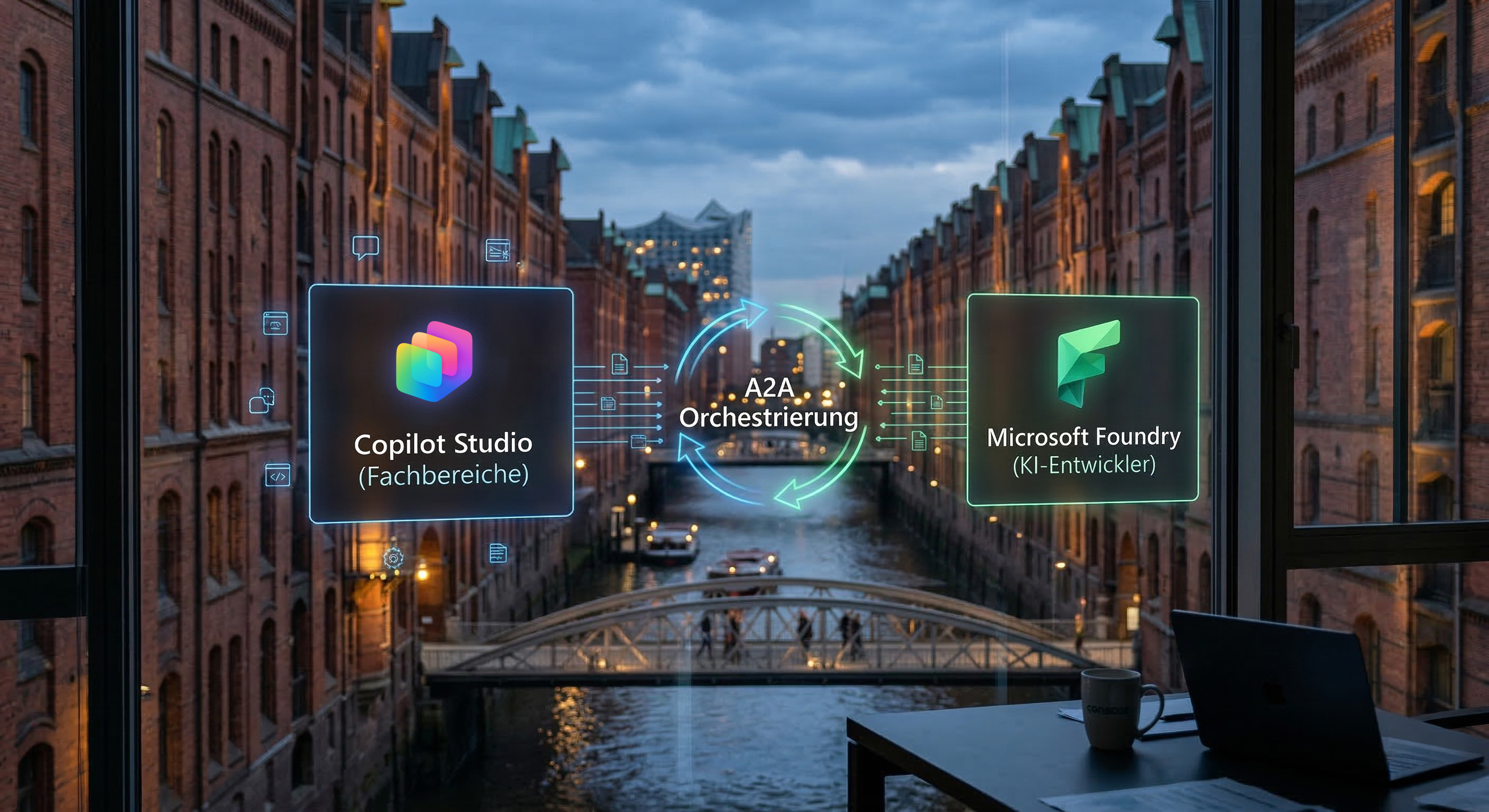 - Die hybride Architektur: Das dominante Architekturmuster 2026 ist das Agent-to-Agent (A2A) Paradigma. Microsoft Copilot Studio dient permanent als Frontend („Front Door“), welches hochkomplexe Backend-Agenten aus der Microsoft Foundry per API aufruft, anstatt den Prozess vollständig auszulagern.
